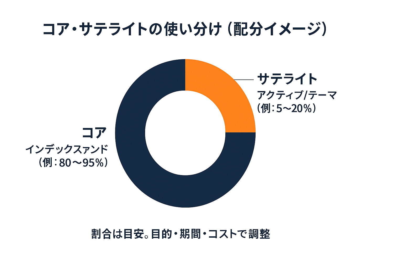 2. サテライト(5〜20%):アクティブファンドやテーマ投資で個性を加える