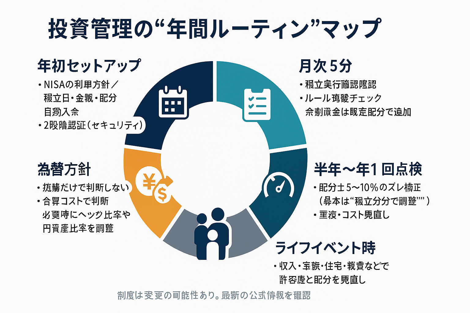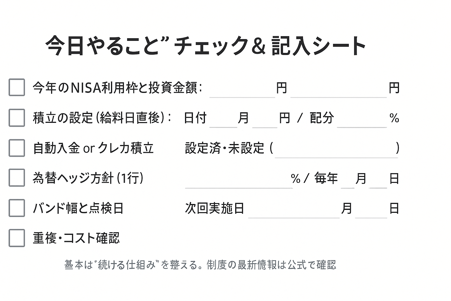 制度や為替の影響を受けやすい項目を、やることベースでチェックできるようまとめました。NISAの上限額や対象商品などの詳細は変更される可能性があるため、必ず公式情報で最終確認してください。