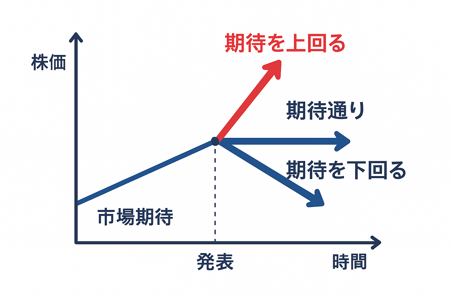 ただし、発表されたからといって必ず株価が上がるわけではありません。その理由は「市場の期待とのギャップ」にあります。