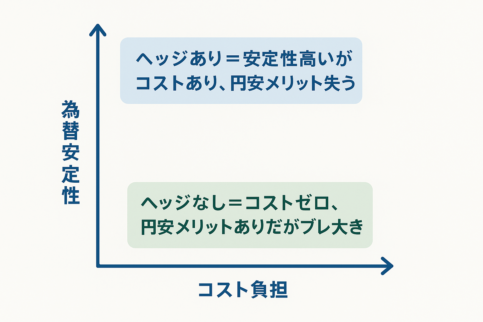 • ヘッジは「安定=良い」という単純な話ではなく、「為替要因を消すか残すか」の選択です